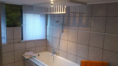 Das Bad ist geräumig und hell , Badewanne mit Dusche ,Fussbodenheizung.....ein Ort wo man gern mal allein ist.